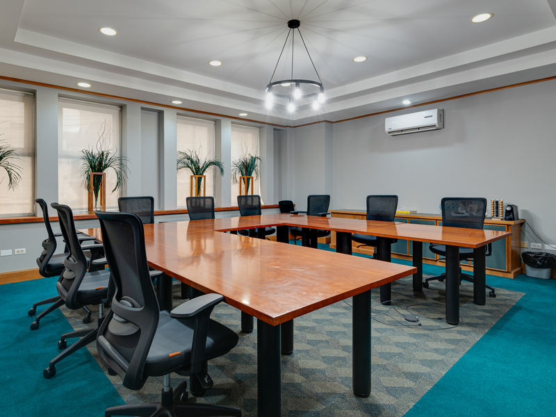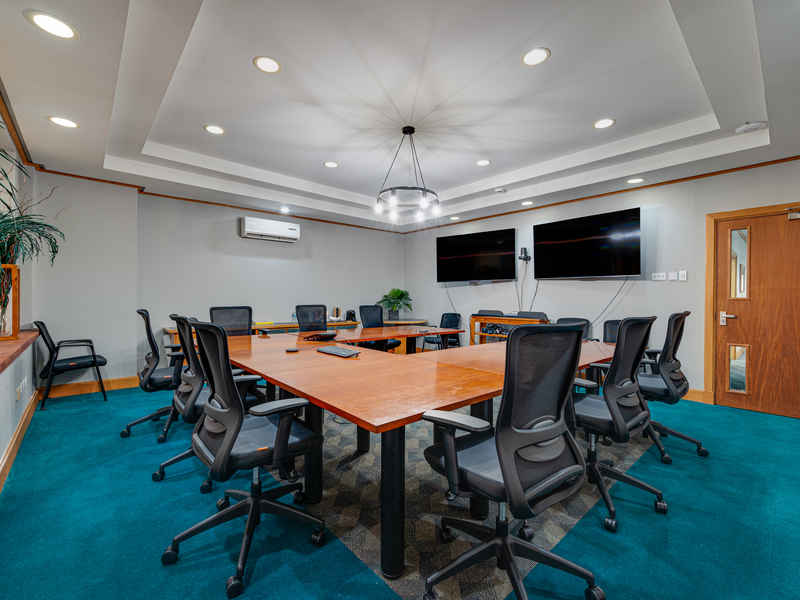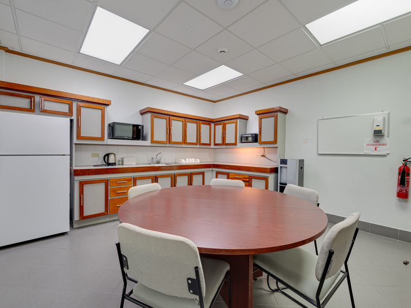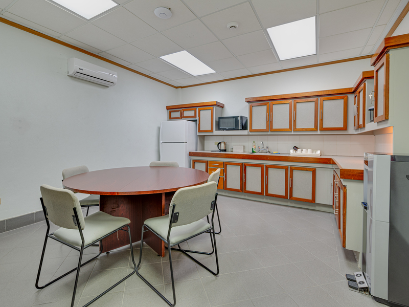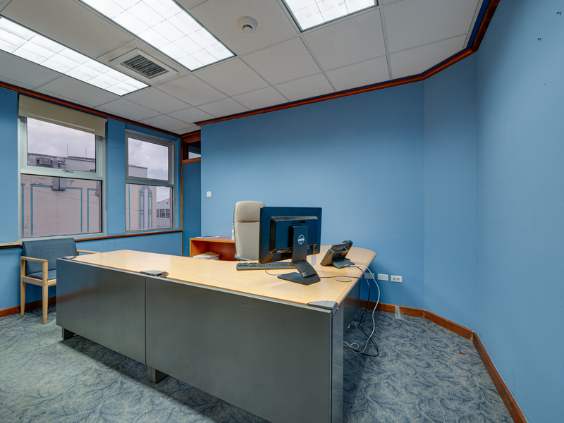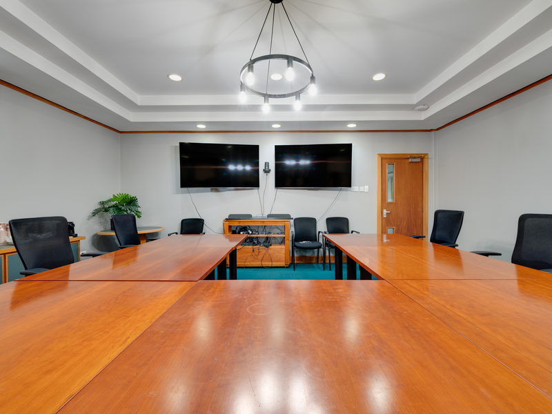 The ground floor boasts a spacious and inviting reception area along with enclosed office spaces. The upper two floors contain meeting rooms, a large boardroom, and staff rooms. Restroom facilities are available on each level, and there is parking for approximately 15 vehicles located at the rear of the building.
