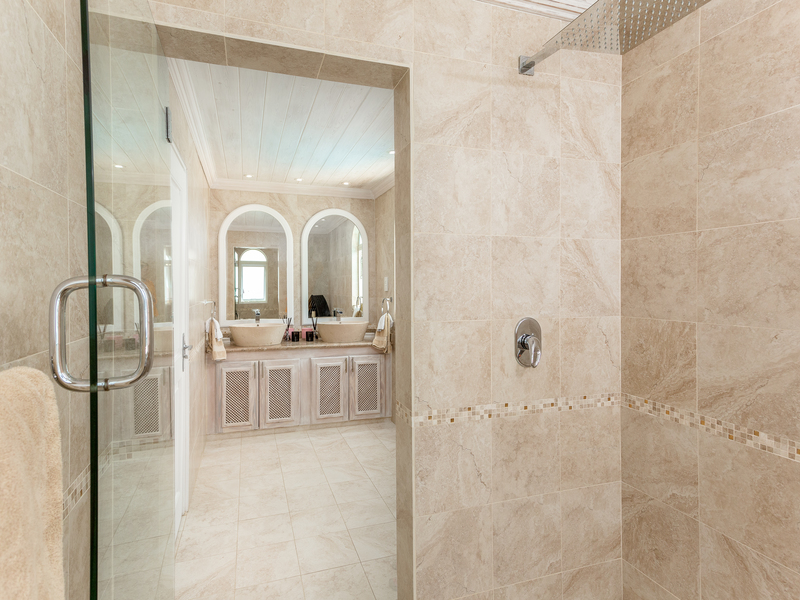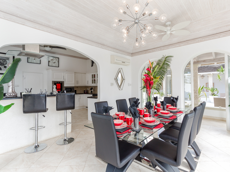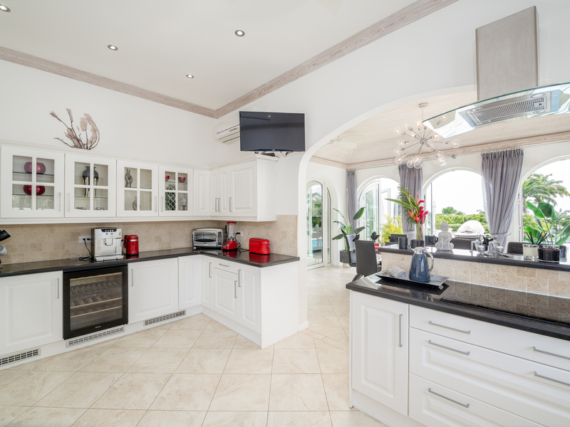 Traditional features blend tastefully with modern clear glass windows and doors along with quality contemporary style furniture. Air conditioned throughout, with ceiling fans, ensuring that when the tropical climate becomes a little too hot for some, the house can become a chilled haven of relaxation. The large kitchen serves the elegant air-conditioned internal dining room, opening up onto the beautiful and spacious pool deck and BBQ areas, which surround a stunning infinity pool, one of the largest on Royal Westmoreland.