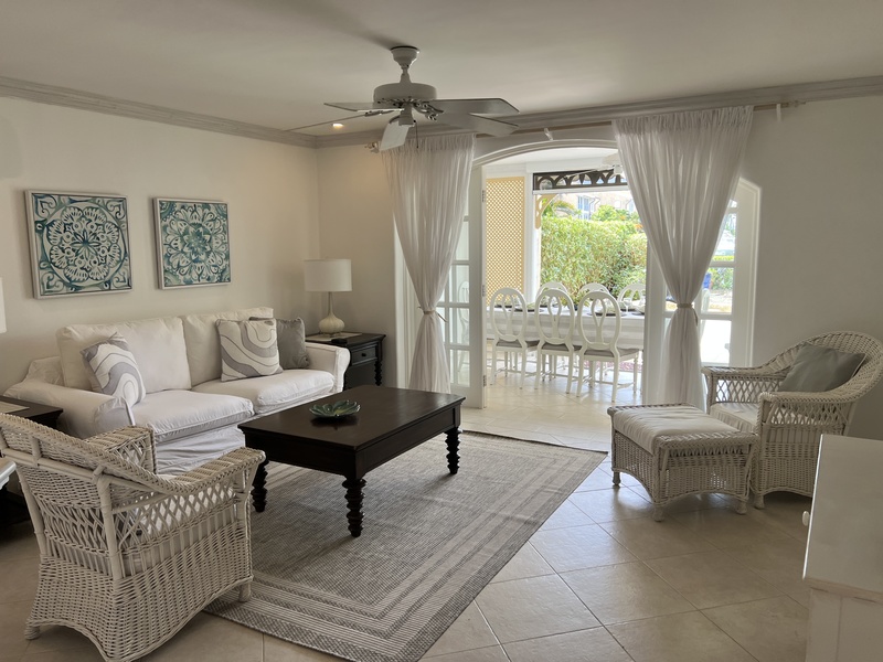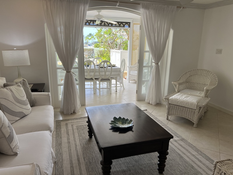 This east/west facing ground floor 1 bedroom, 1 bathroom apartment offers exceptional views across the Port St. Charles Marina directly to the ocean and cooling tropical breezes.