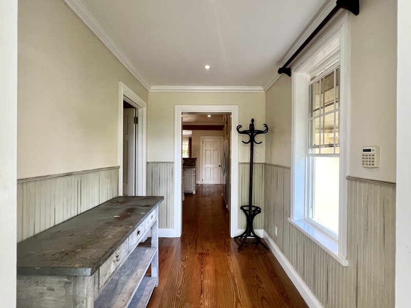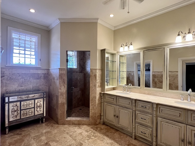 The Home features a double Car Garage which is conveniently located off an entrance Hallway which leads to the Laundry Room and Kitchen. Additional Parking is available off of the Front Patio of the Home, which features a spacious covered Patio with a Bar for entertaining. Full French Doors leading off of this Patio invite you into the Formal Dining and Sitting Rooms. The Hallway diving these two rooms leads you into an expansive Open Plan Kitchen, Breakfast Nook and Living Room.