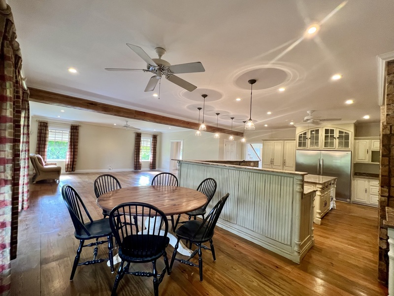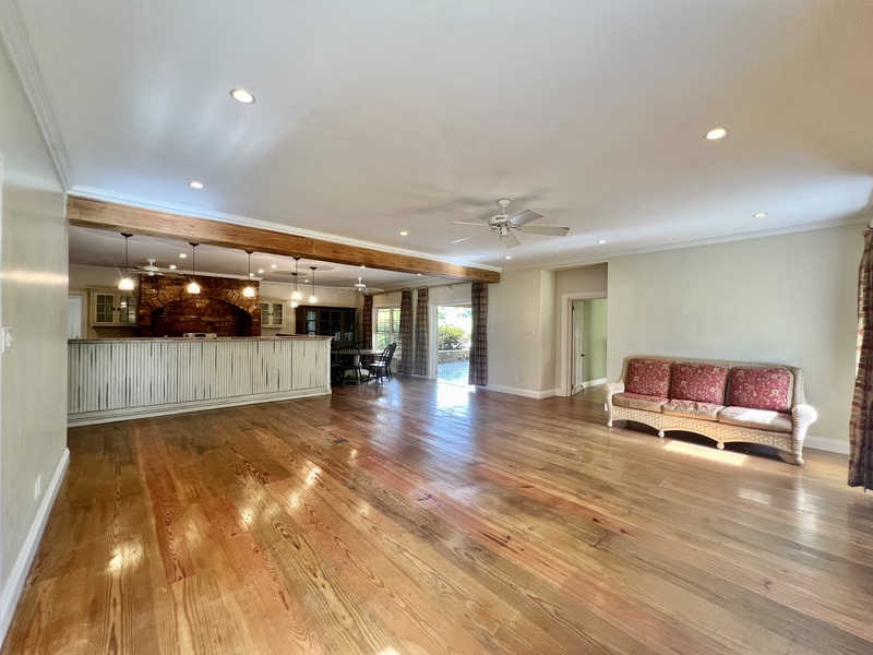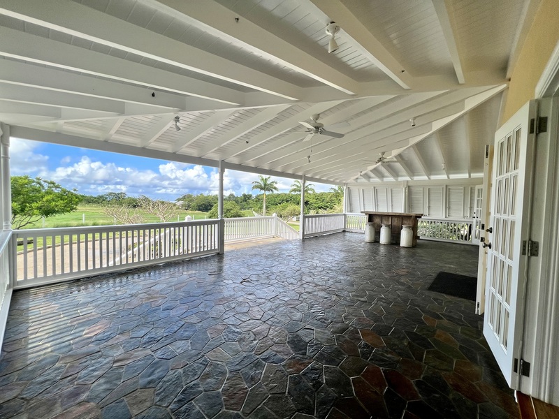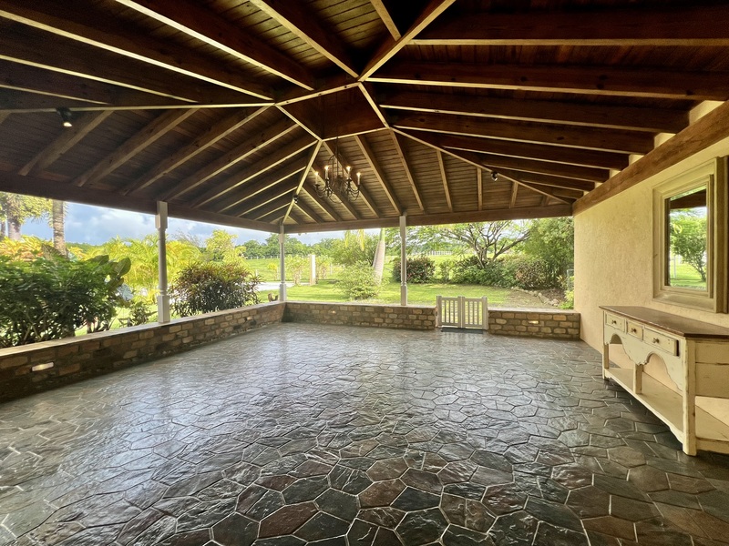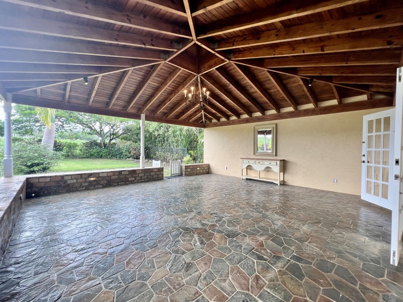 From the Breakfast Nook there is another large covered entertainment Patio, which walks onto the back Gardens and Pool Deck.