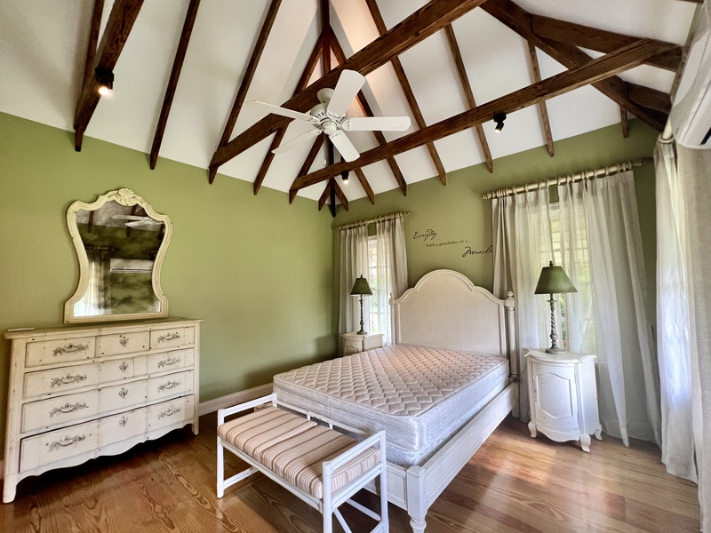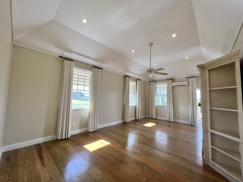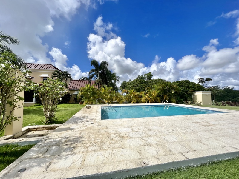 This Home features four airconditioned bedrooms. One ensuite Guest Bedroom is on the Ground Floor and the other three are on the First Floor. These feature a Master Bedroom with ensuite Bathroom and large walk in closet. The other two Bedrooms have a Bathroom that sits between them. The Master Bedroom and one other Bedroom lead onto a covered Patio which has panoramic views of the scenic countryside. The home features a large salt water Swimming Pool, with a private coral stone deck.