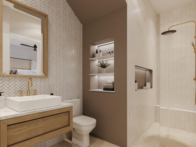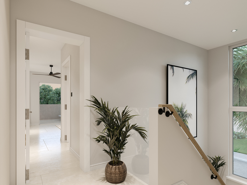 A beautifully designed guest bedroom on the upper floor awaits you, with its own en-suite bathroom including rain shower head, luxurious sanitary ware and creative tiling. Built-in closets provide ample storage and large windows allow for plenty of Bajan sunshine and fresh trade wind breezes.