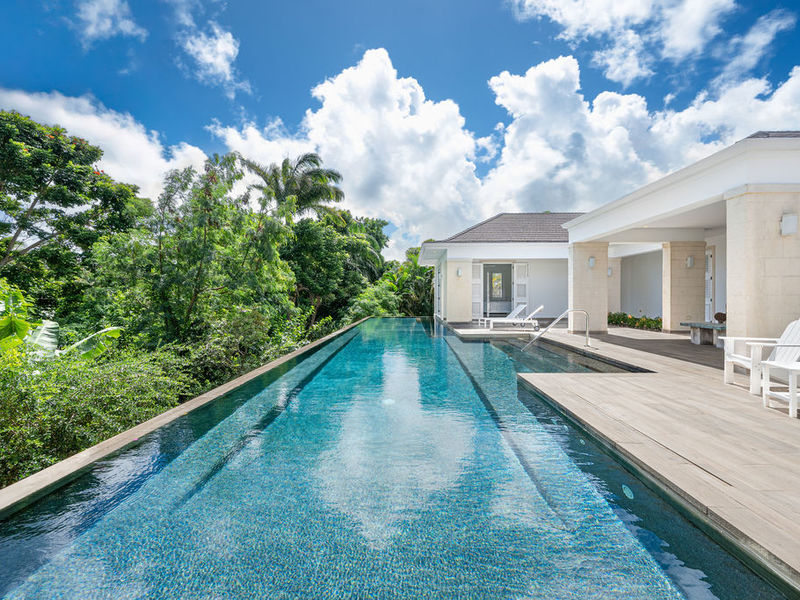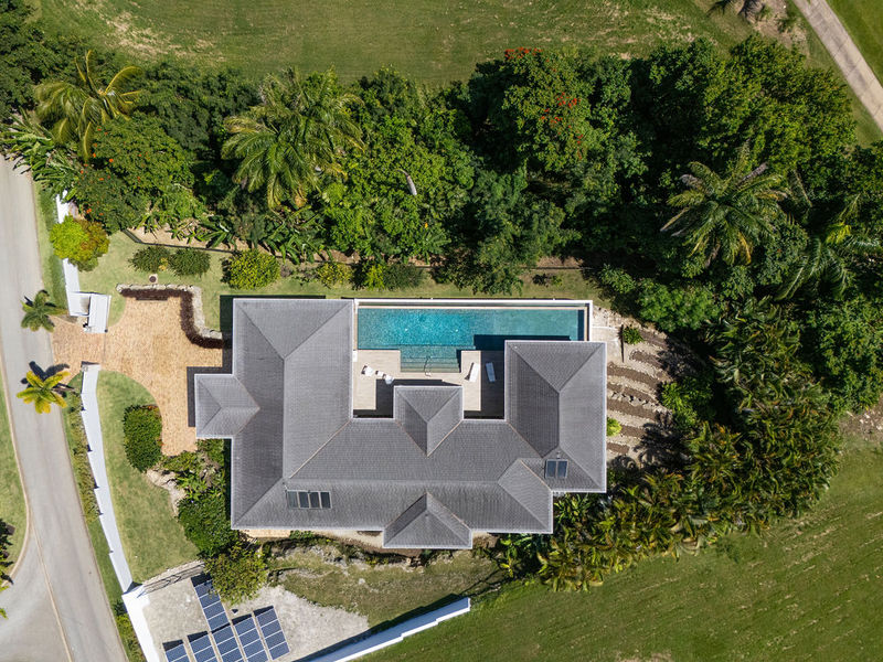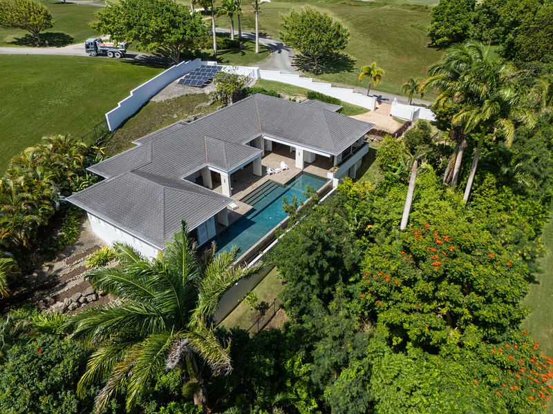 Sugar Water – Apes Hill Club, is a modern, eco-conscious residence set on nearly two-thirds of an acre of beautifully manicured grounds, Sugar Water blends contemporary design with a deliberate commitment to sustainability. The property is tucked away in a private, elevated position, benefitting from constant cooling breezes off the Atlantic and overlooking the 3rd fairway and green at Apes Hill Club.
