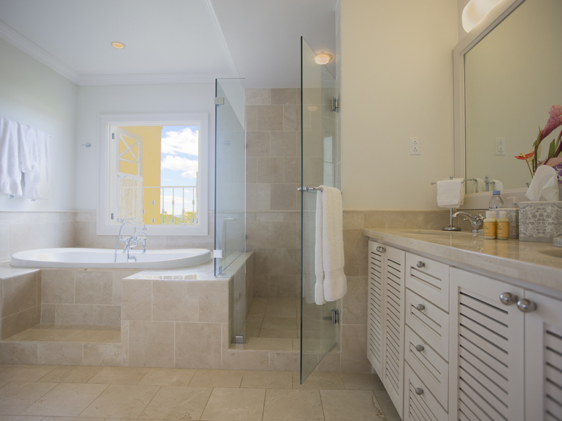 The master bedroom suite is located on the 3rd floor. This offers partial views of the coast line and the pool deck below. All bedrooms offer air-conditioning and ceiling fans.