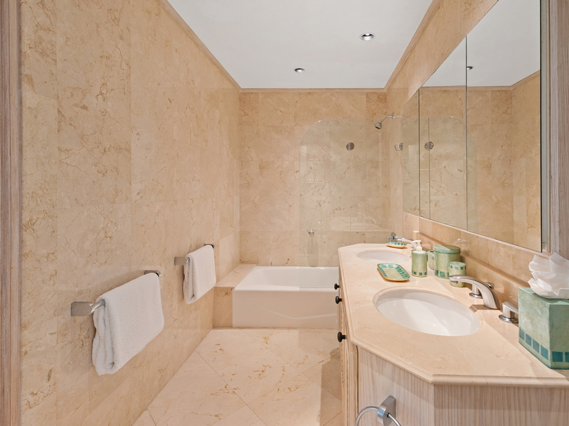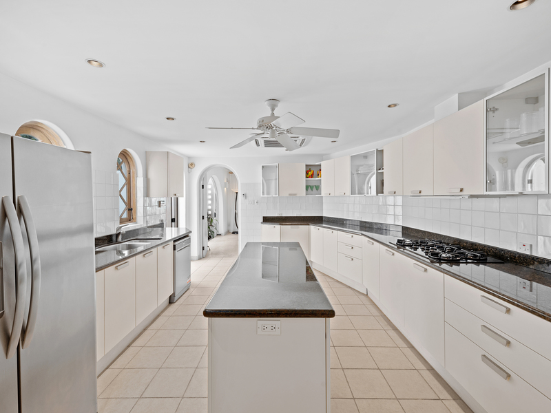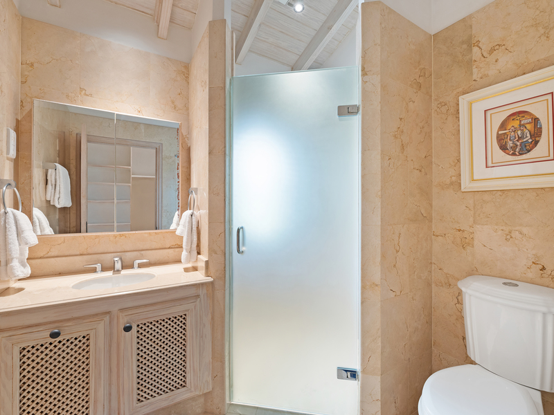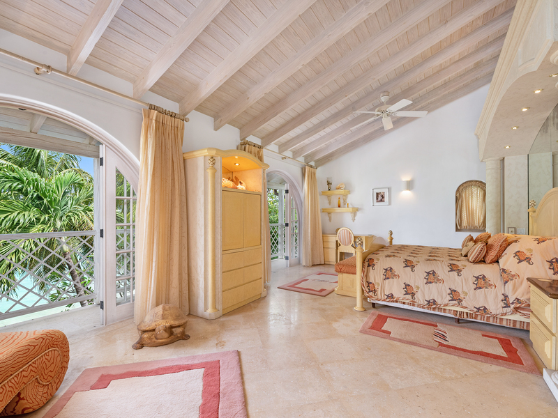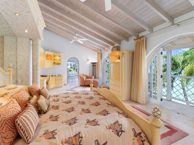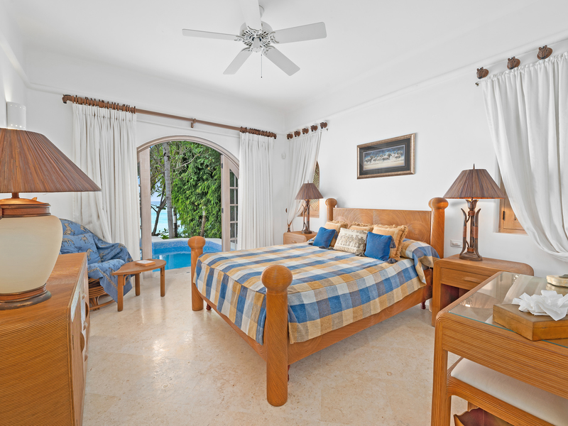 In the north wing you will find a powder room with marble walls and floor, plus two spacious bedroom suites, which open directly out to the swimming pool. Four additional bedroom suites are located on the upper level, including the elegantly furnished master bedroom suite, featuring a sitting area, walk-in closet and luxurious marble bathroom with shower and spa tub. The master suite also leads onto a balcony enjoying views of the white sandy beach below.